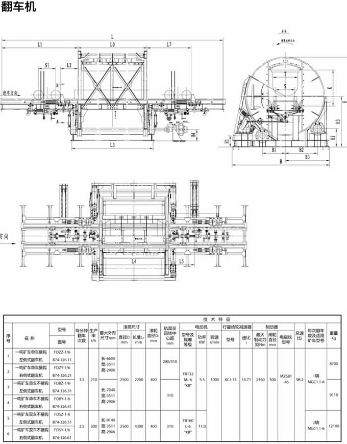 翻車機(jī)指一種用來翻卸鐵路敞車散料的大型機(jī)械設(shè)備??蓪⒂熊壾囕v翻轉(zhuǎn)或傾斜使之卸料的裝卸機(jī)械,適用于運(yùn)輸量大的港口和冶金、 煤炭、 熱電等工業(yè)部門。礦井下的礦車也大多用小型翻車機(jī)卸車。翻車機(jī)可以每次翻卸1-4節(jié)車皮。早期的設(shè)備只能翻卸1節(jié)車皮,現(xiàn)在***大的翻車機(jī)可以翻卸4節(jié)車皮。