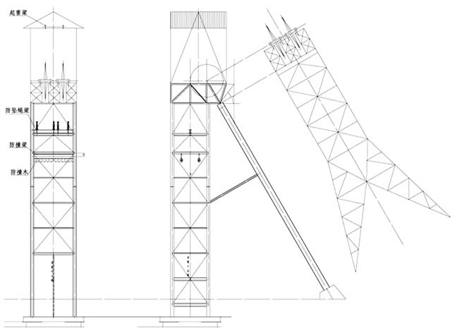 1、本型鋼井架大梁、斜撐采用厚壁鋼管。